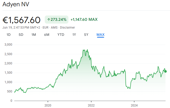 "Adyen NV Share Price | AS: ADYEN Stock - Investing.com UK." Investing.com UK. https://uk.investing.com/equities/adyen